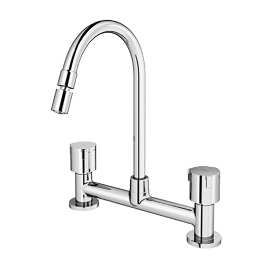A bica longilínea e a base delicada renovam a atratividade das peças. mas o volante em bujão com abertura de ¼ de volta permanece fiel à sua identidade clássica.