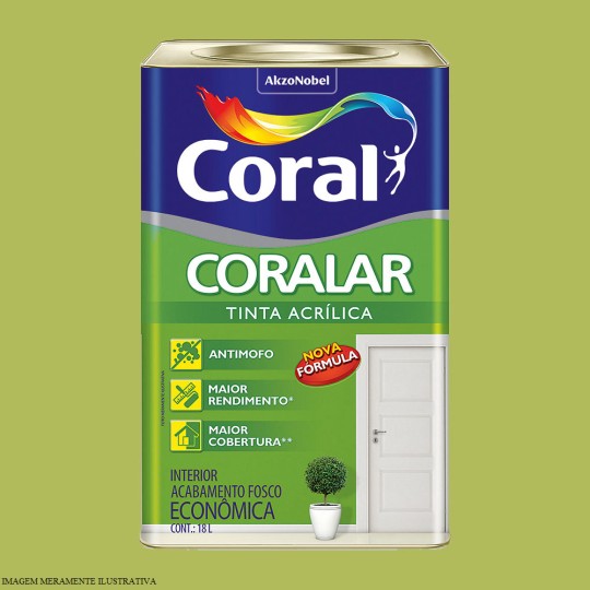 O Coralar agora está com uma nova embalagem e nova fórmula. Com maior rendimento e cobertura em relação à fórmula anterior é de fácil aplicação. rápida secagem. mínimo respingamento e oferece bom acabamento e ação antimofo. Uma lata de 18L pinta até 320m² por demão.