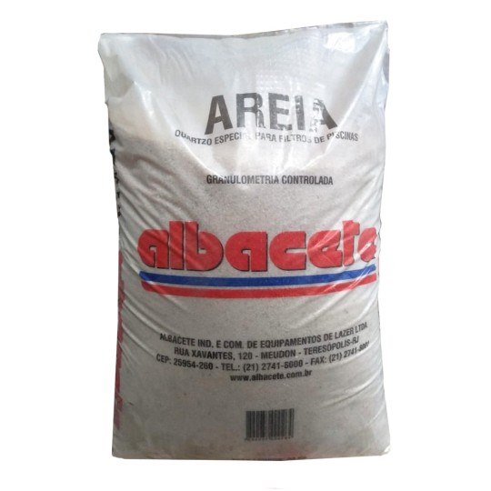 A Albacete recomenda. para a utilização em nossos equipamentos. a areia de quartzo especial para filtros Albacete. Esses produtos foram desenvolvidos na granulometria perfeita para proporcionar a água mais límpida e brilhante para a sua piscina.Saco de areia com 30kg. (malha 14/40).