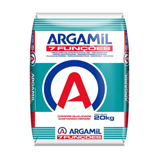 Argamil Sete Funções é uma argamassa de múltiplo uso de alto desempenho. utilizada para fixar placas cerâmicas na configuração de piso sobre piso interno. porcelanatos de até 60 x 60 em ambientes internos. placas cerâmicas em ambientes internos e externos. placas de ardósia. pedras decorativas. granitos e mármores.