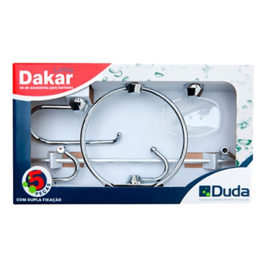 O Kit contem: 1 Porta-toalha de Banho. 1 Papeleira. 1 Porta-toalha de Rosto Argola. 1 Saboneteira de Parede. 1 Cabide Simples