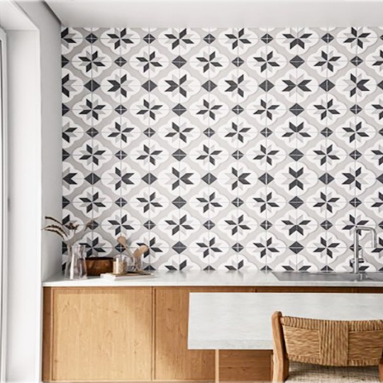 Um ladrilho hidráulico geométrico. com cores atuais e relevo delicado. ideal para ambientes residenciais e comerciais.