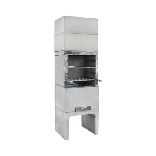 Acompanha: Grelha moeda inox, porta espetos, dois módulos e acabamento frontais e laterais todo em aço inox.