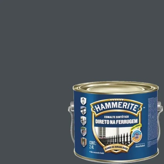 O Esmalte Sintético Hammerite Direto na Ferrugem é um esmalte antioxidante que se aplica diretamente sobre ferro limpo ou enferrujado. Não necessita de fundo prévio. Previne e interrompe o processo de ferrugem. Sua nova fórmula oferece uma Dupla Tecnologia: Alta Repelência a Água e Ação Anticorrosiva. além de permitir a diluição com aguarrás convencional. eliminando a necessidade de diluição com um solvente específico. Possui um grande poder de cobertura e rendimento. Indicado para ambientes externos e internos.