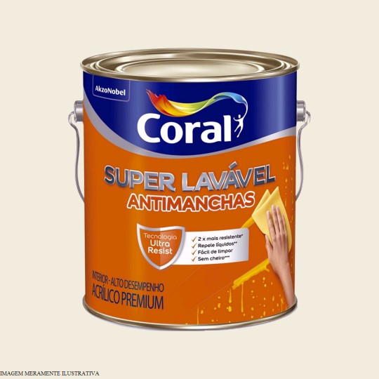 Coral Super Lavável Antimanchas é uma tinta acrílica de alto desempenho e alta durabilidade para ambientes internos. Com a inovadora Tecnologia Ultra Resist. Coral Super Lavável é 2 vezes mais resistente à limpeza. repele líquidos e é sem cheiro. Seu acabamento Eggshell tem um nível de brilho intermediário entre o fosco e o acetinado. o que ajuda a disfarçar as imperfeições da parede. Sua fórmula foi especialmente desenvolvida para entregar o desempenho superior em limpeza de manchas de chocolates. ketchup. café. refrigerantes. sucos. lápis. caneta hidrográfica. lápis de cor e batom. Renove sua casa com Coral Super Lavável Antimanchas e deixe suas paredes bonitas e com aparência de novas por muito mais tempo.