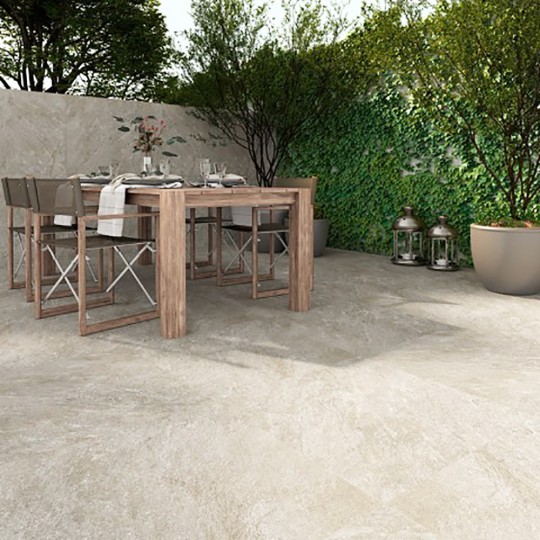 Indicado para áreas externas. o Pietra di Vesale Sabbia é excelente. pois possui aderência e resistência ao risco ideais. Seus relevos e desenhos. deixam a paginação semelhante à de pedras naturais. aliadas à durabilidade e sofisticação de um porcelanato.
