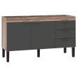 O Gabinete de Cozinha em Madeira Flamingo possui gavetas com corrediças telescópicas. exclusivos puxadores em aço eletrogalvanizado da Cozimax. e pés com regulagem de altura em polipropileno virgem na cor preta. que não ressecam e não quebram.