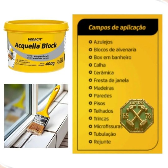 Aparência: Após seco, o Acquella Block se torna incolor, não alterando as caracteríscticas dos materiais.
