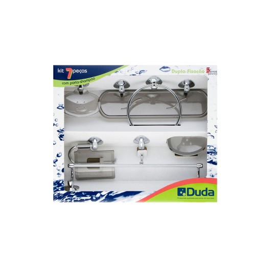 O Kit contem: 1 Cabide Simples. 1 Porta shampoo. 1 Papeleira com Proteção. 1 Porta-toalha de Banho. 1 Porta-toalha de Rosto Argola. 1 Saboneteira de Parede. 1 Saboneteira de Bancada