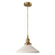 O Pendente Araucária Gold possui acabamento em ouro envelhecido, fio de tecido trançado, cúpula em porcelana.