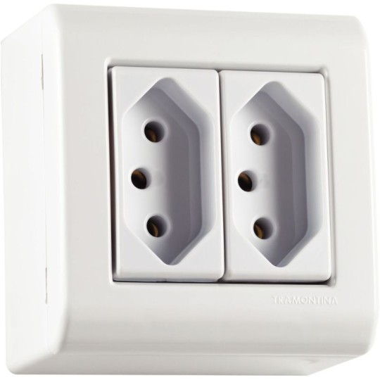 A Caixa de Sobrepor com 2 Tomadas 2P+T 20 A 250 V Tramontina LizFlex Branca é a escolha ideal para ligar seus equipamentos eletroeletrônicos com maior qualidade e eficácia. Perfeita para quem busca o melhor para seus projetos, ela proporciona rapidez e flexibilidade em suas obras, já que sua instalação fica perfeita e não demanda transtornos como quebras de paredes e dispensa o uso de parafusos. Ela é fabricada em termoplástico na cor branca e é composta por caixa, tampa com encaixe de pressão e módulos. Além de contar com sistema modular, possui janelas para inserir canaletas de diferentes dimensões. Com a Tramontina, você tem a garantia de espaços funcionais e cheios de estilo!