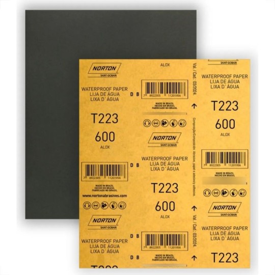 A Folha de Lixa d'agua T223 é uma lixa de papel com grãos de Óxido de Alumínio Marrom indicada para aplicações a úmido, permitindo um melhor acabamento superficial, regularizando massas, primers e vernizes nos processos de repintura automotiva. Também pode ser utilizada a seco no lixamento de massa ou gesso sobre parede assim como para o lixamento de madeira. Seu costado de papel permite maior flexibilidade durante a aplicação.