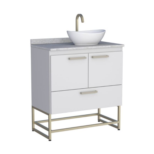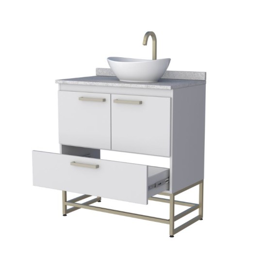 ARMÁRIO BANHEIRO MADEIRA SUEZ 80CM BRANCO C/ PÉS E TAMPO GRANITO BRANCO - COZIMAX